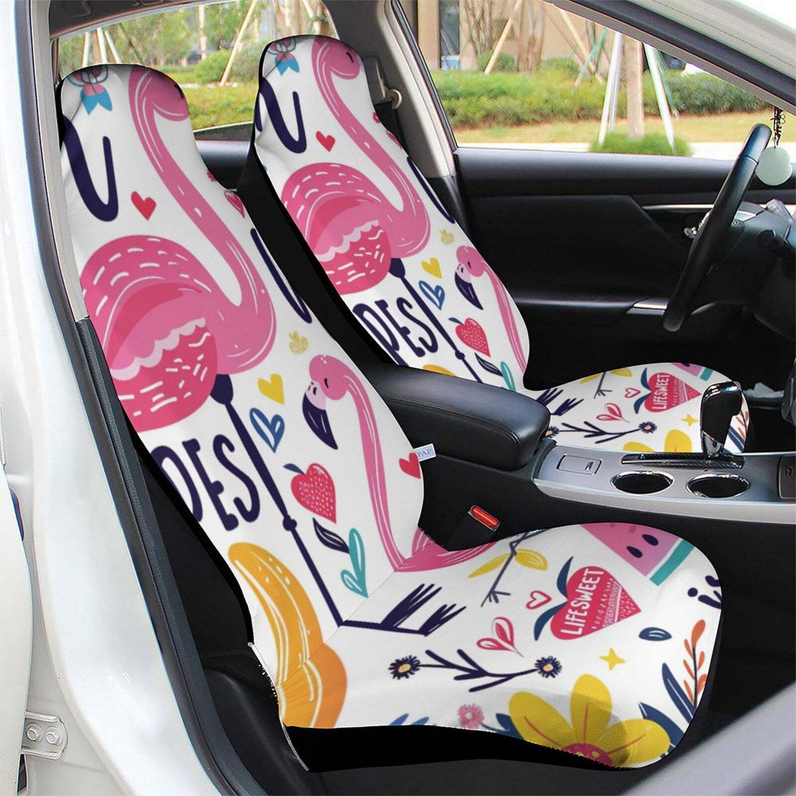 Flamingo Car Seat Covers Flamingo Life Sweet Heart Shape Pattern Seat Covers White Pink