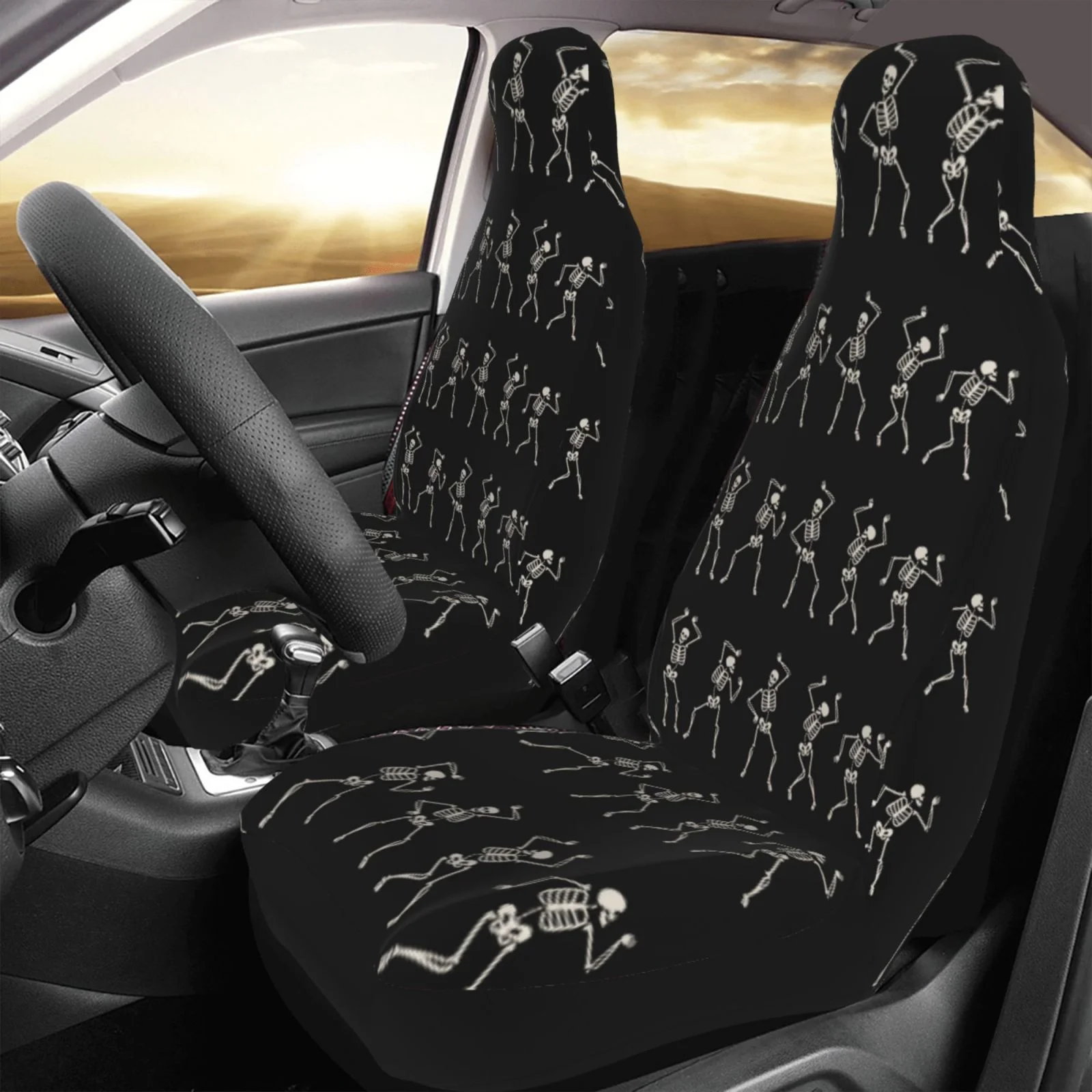 Halloween Car Seat Covers Halloween Dancing Skeleton Pattern Seat Covers Black