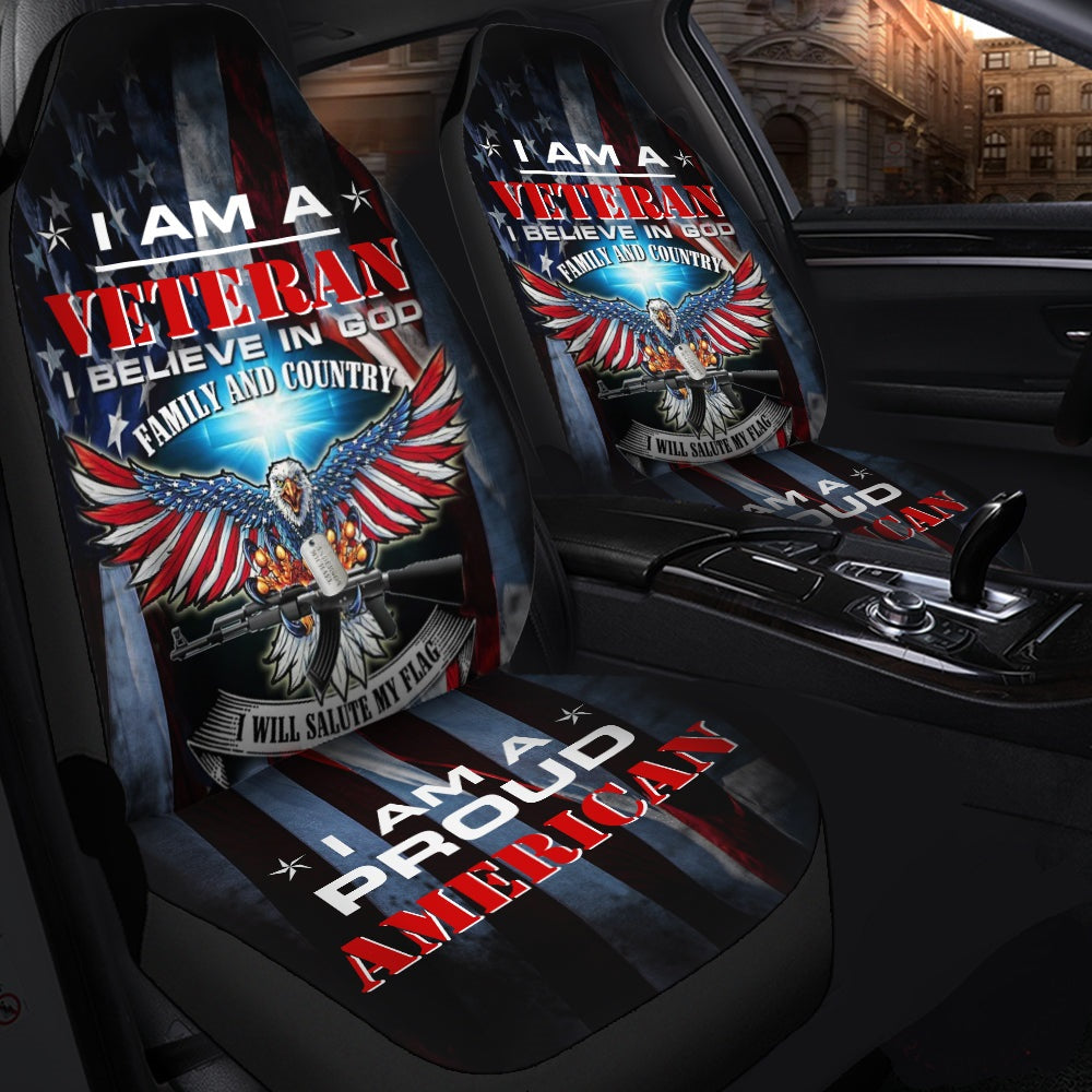 Veteran Car Seat Covers I Am A Veteran I Believe In God Seat Covers Blue Red