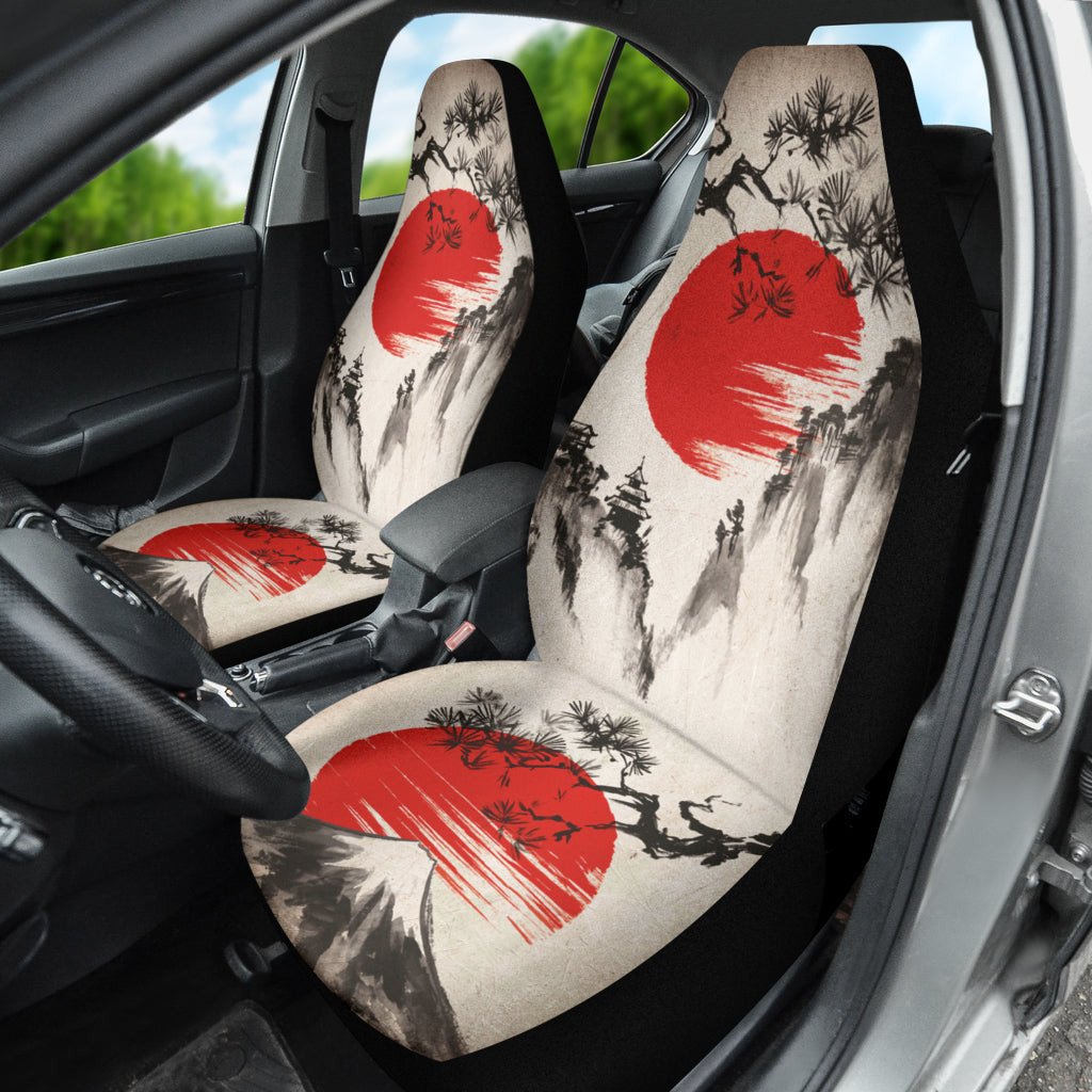 Japanese Car Seat Covers Japan Mountain Landscape Art Seat Covers Black Red