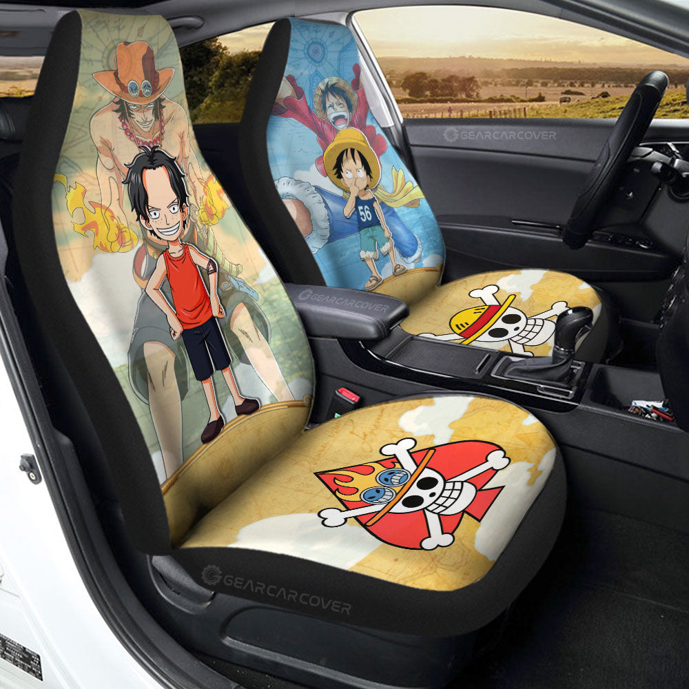 One Piece Car Seat Covers Luffy And Ace Graphic Symbols Pattern Seat Covers Colorful