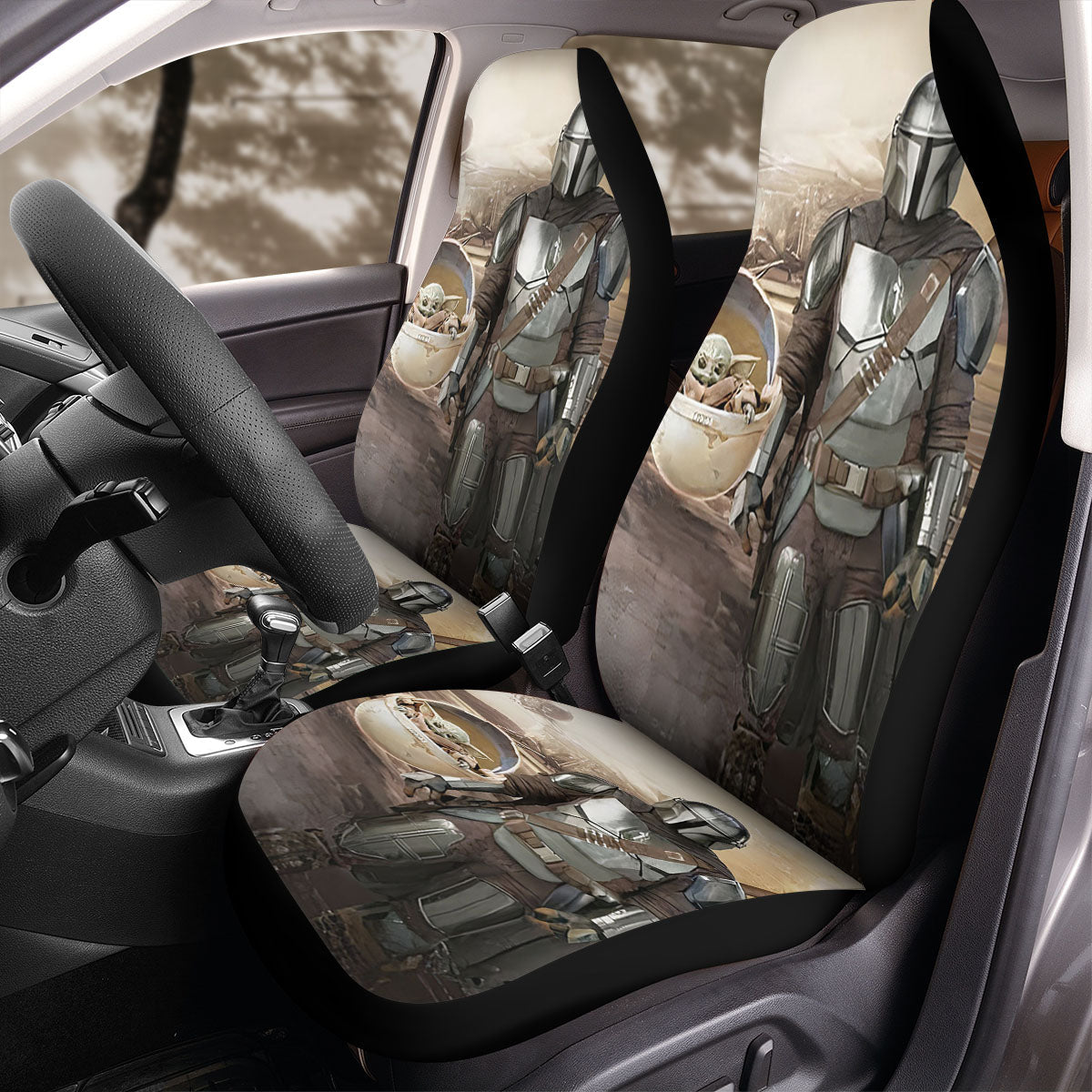 SW Car Seat Covers Mandalorian Baby Yoda Graphic Seat Covers Brown