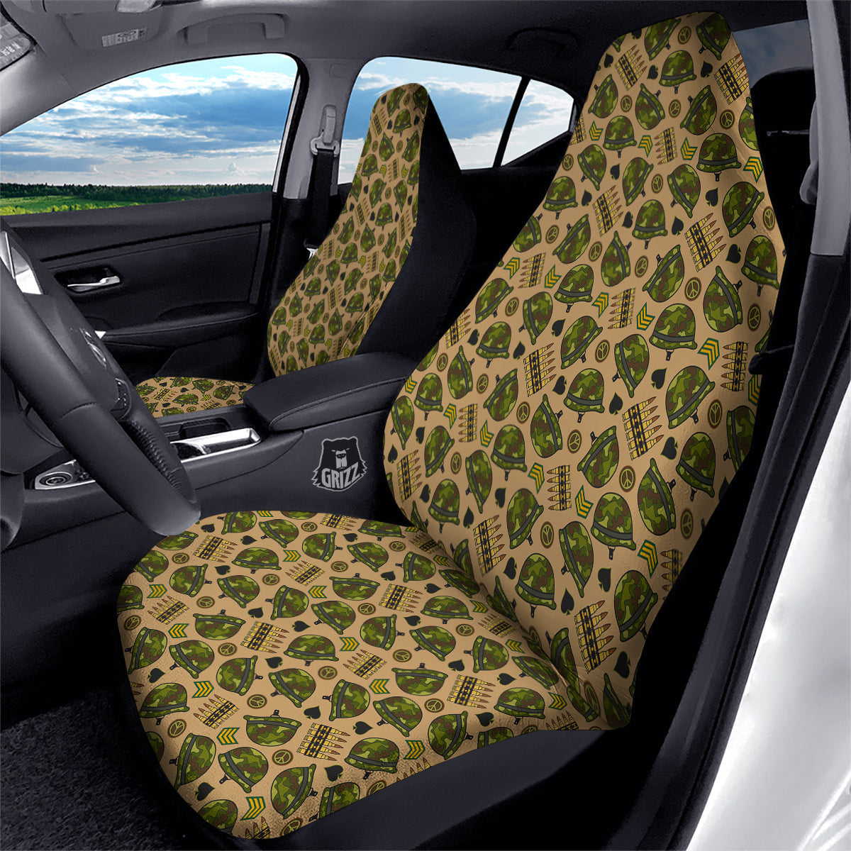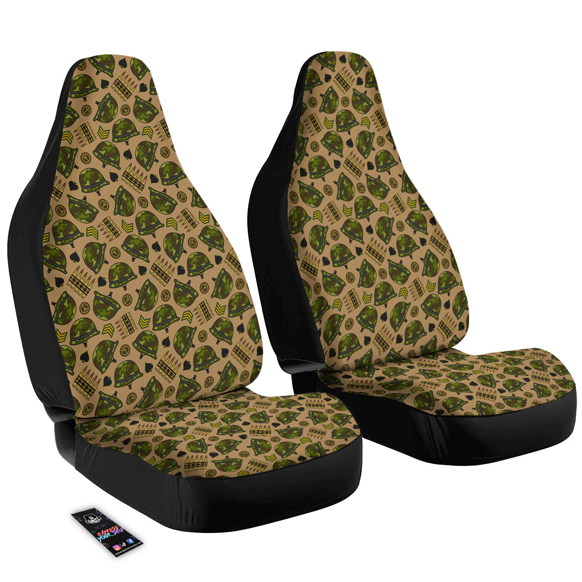 Veteran Car Seat Covers Military Helmet Peace Sign Pattern Seat Covers Green