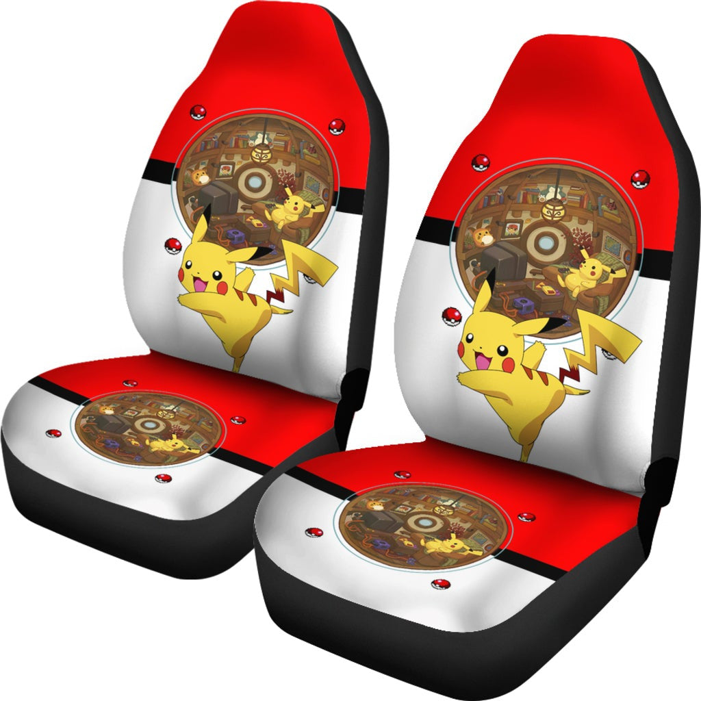 PKM Car Seat Covers Pikachu Lying On Chair Inside Pokeball Seat Covers Colorful