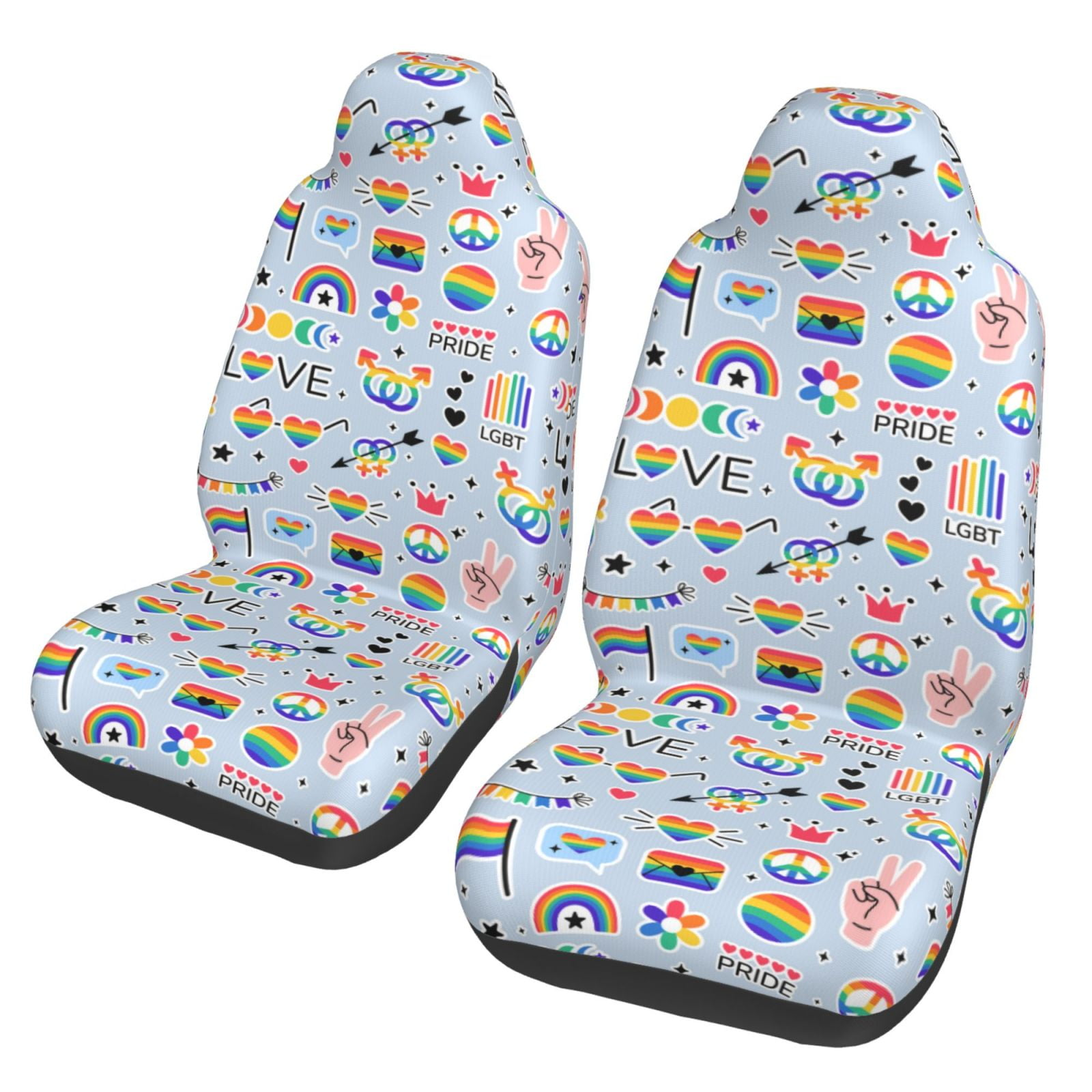 LGBT Car Seat Covers Rainbow LGBT Pride Doodle Sticker Pattern Seat Covers Blue