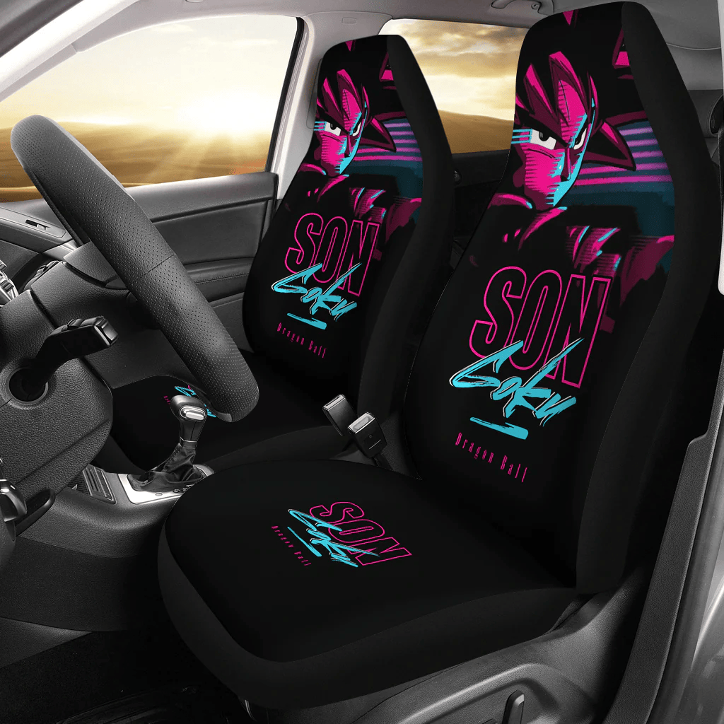 Dragon Ball Car Seat Covers Retro Neon Light Dragon Ball Goku Seat Covers Pink Black