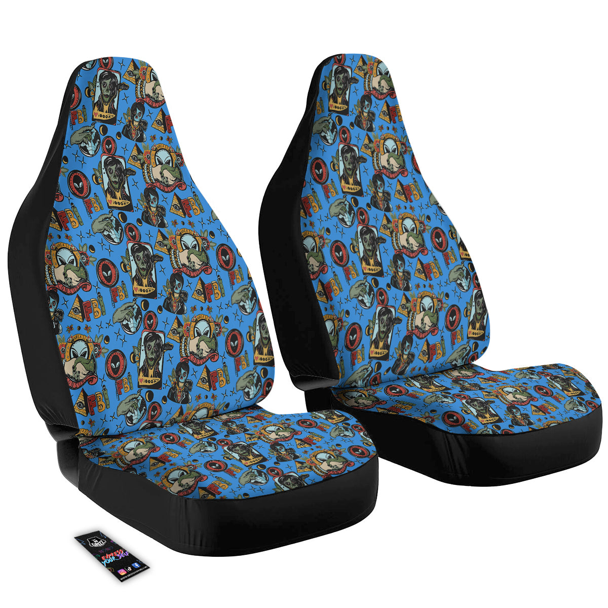Alien Car Seat Covers Retro Space Alien Stickers Pattern Seat Covers Colorful