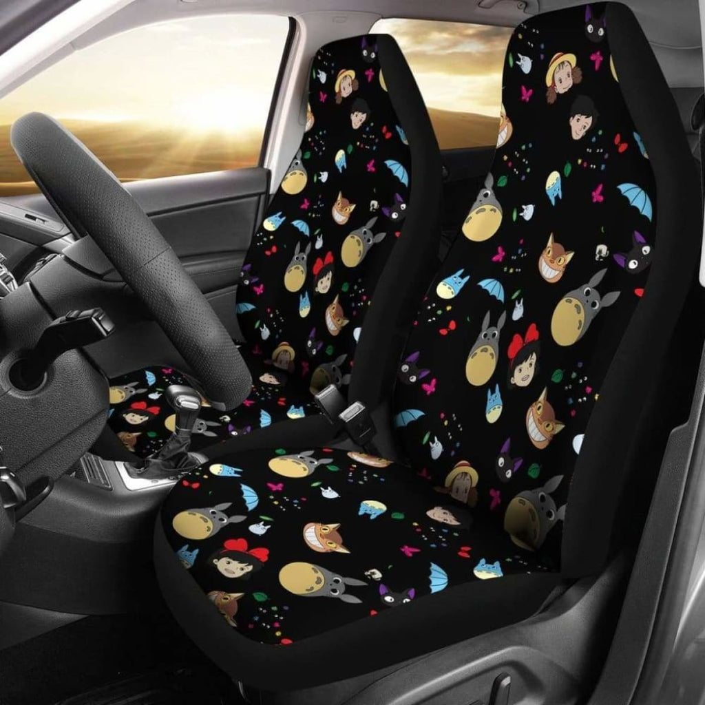 SGhibli Car Seat Covers SGhibli Characters Head Pattern Seat Covers Black