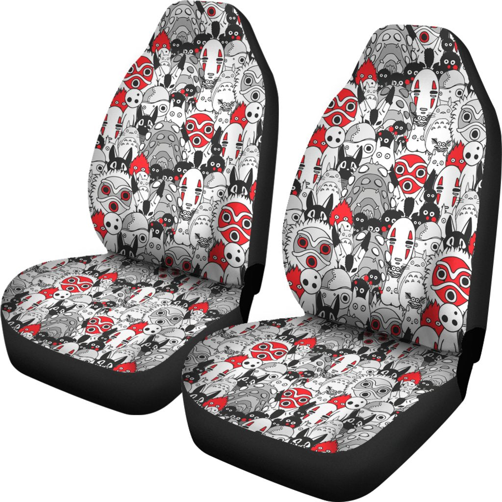 SGhibli Car Seat Covers SGhibli Characters Pattern Seat Covers White Gray