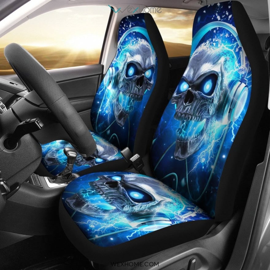 Skull Car Seat Covers Skull Listening Music Graphic Seat Covers Blue
