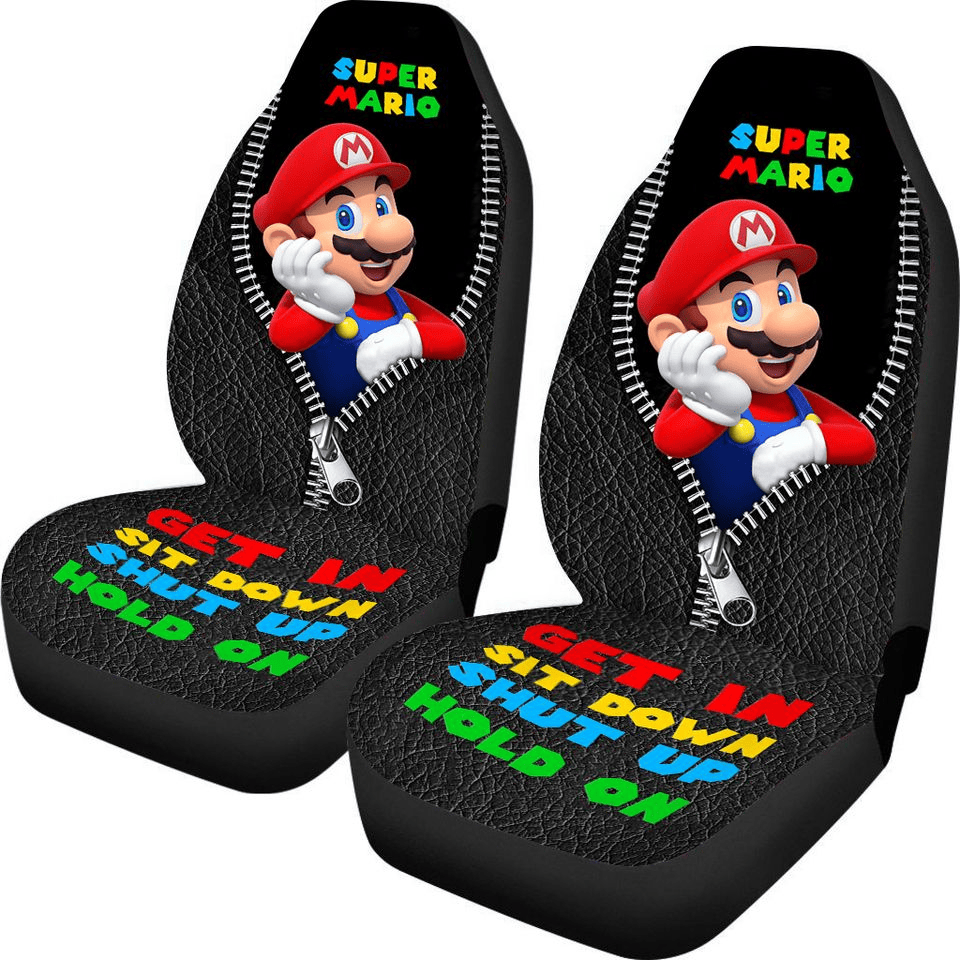 Mario Car Seat Covers Super Mario Get In Sit Down Shut Up Seat Covers Black