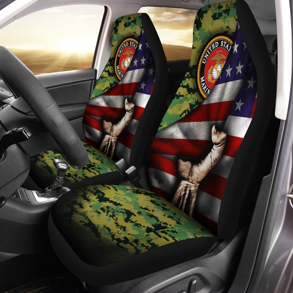 Veteran Car Seat Covers US Marine Corps American Flag Camo Pattern Seat Covers Green