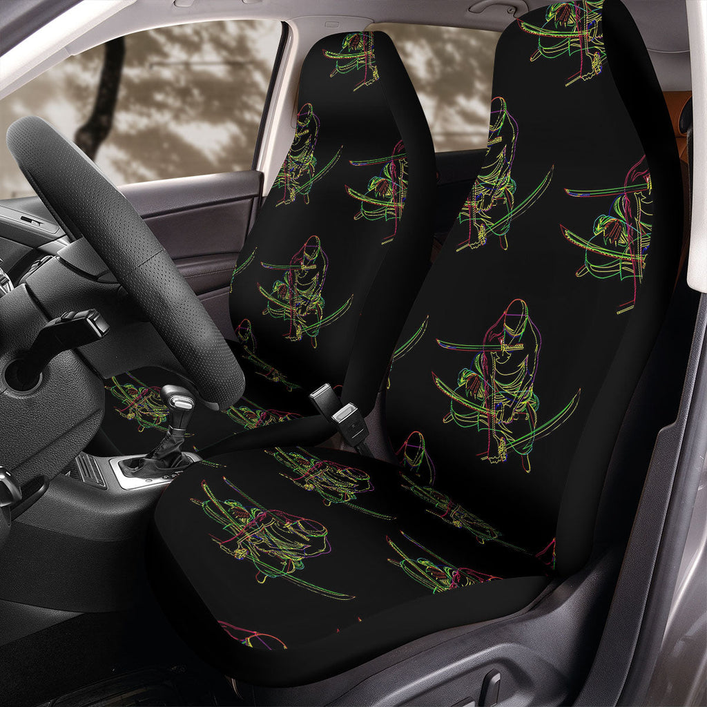 One Piece Car Seat Covers Roronoa Zoro Neon Light Pattern Seat Covers Black