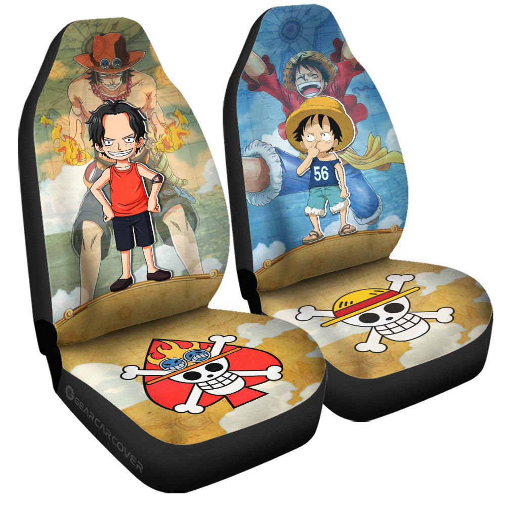 One Piece Car Seat Covers Luffy And Ace Graphic Symbols Pattern Seat Covers Colorful