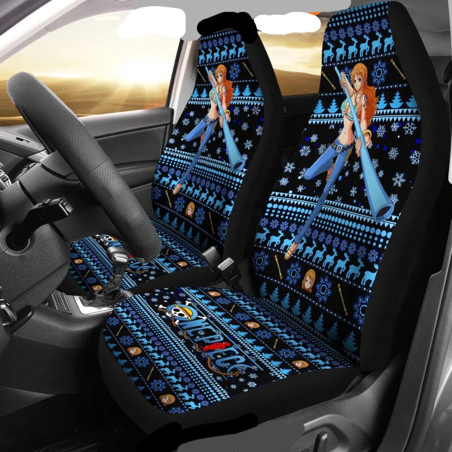 One Piece Car Seat Covers One Piece Nami Chrstmas Pattern Seat Covers Black Blue