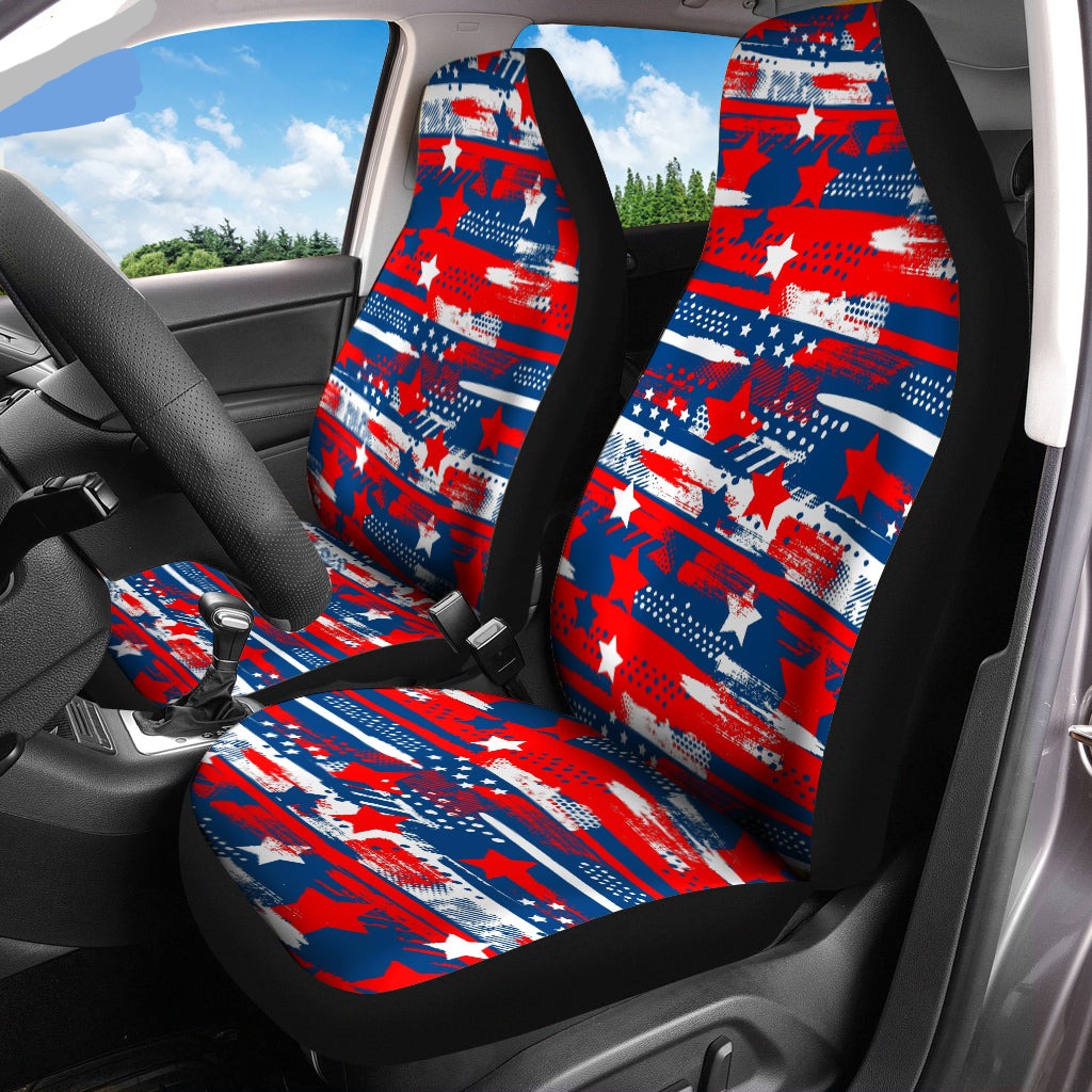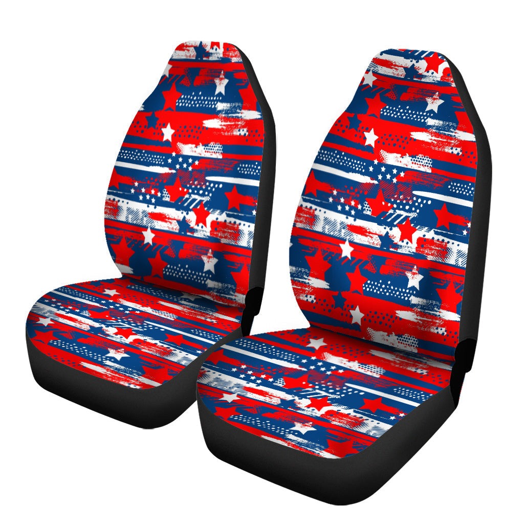4th Of July Car Seat Covers Independence Day Star Grunge Pattern Seat Covers Blue Red