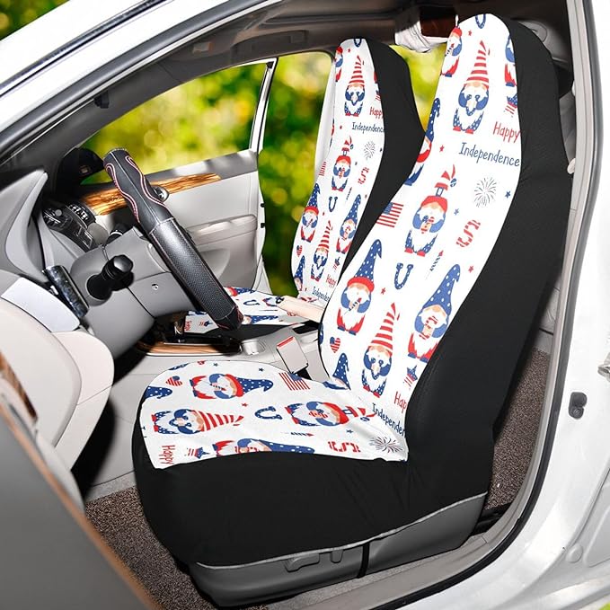 4th Of July Car Seat Covers Happy Independence Day Gnome Pattern Seat Covers Blue Red