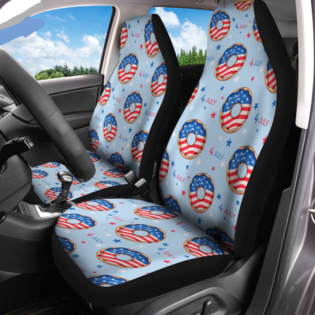 4th Of July Car Seat Covers 4th Of July Donut Pattern Seat Covers Blue Red