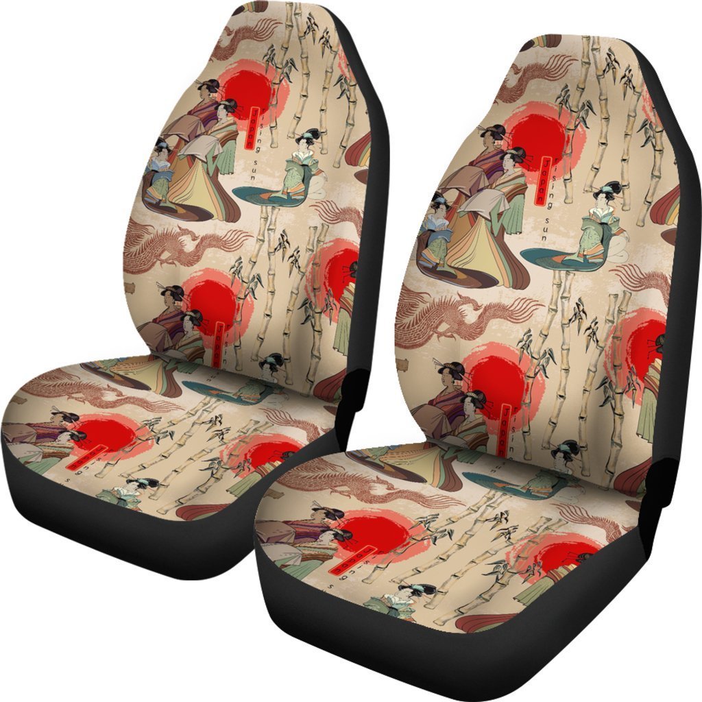 Japanese Car Seat Covers Japanese Geisha Bamboo Pattern Seat Covers Red Brown