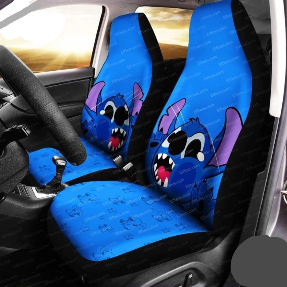 Stitch Car Seat Covers DN Stitch Face On The Glass Seat Covers Blue