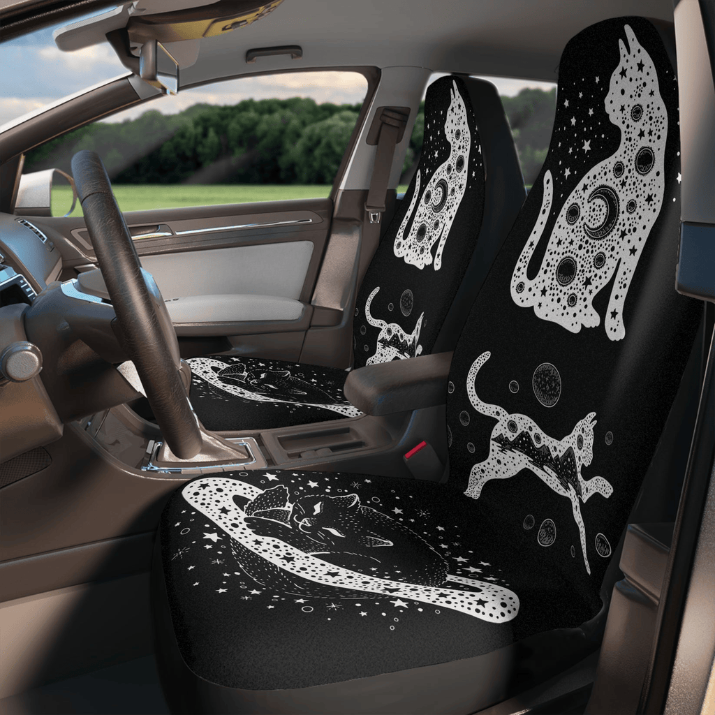 Cat Car Seat Covers Cat Silhouette Dot Moon Star Seat Covers Black White