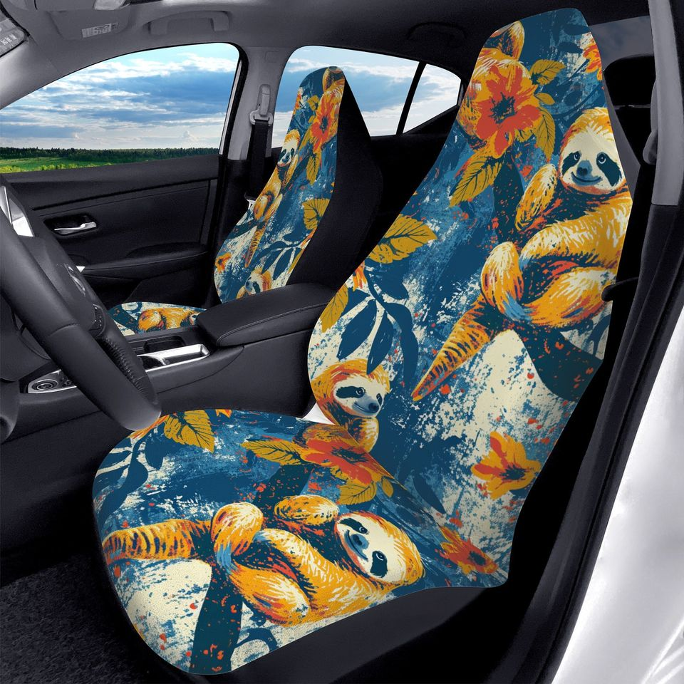 Sloth Car Seat Covers Sloth With Flowers Pattern Seat Covers Blue Yellow