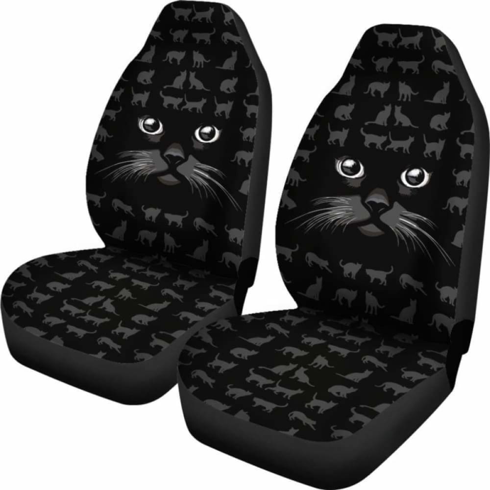 Cat Car Seat Covers Cat Face And Poses Pattern Seat Covers Black