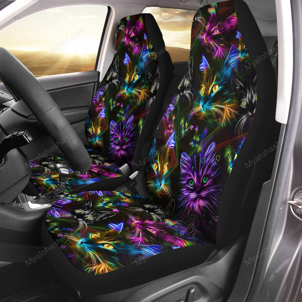 Cat Car Seat Covers Neon Light Cat Pattern Seat Covers Black