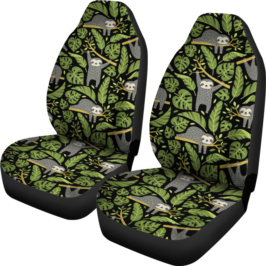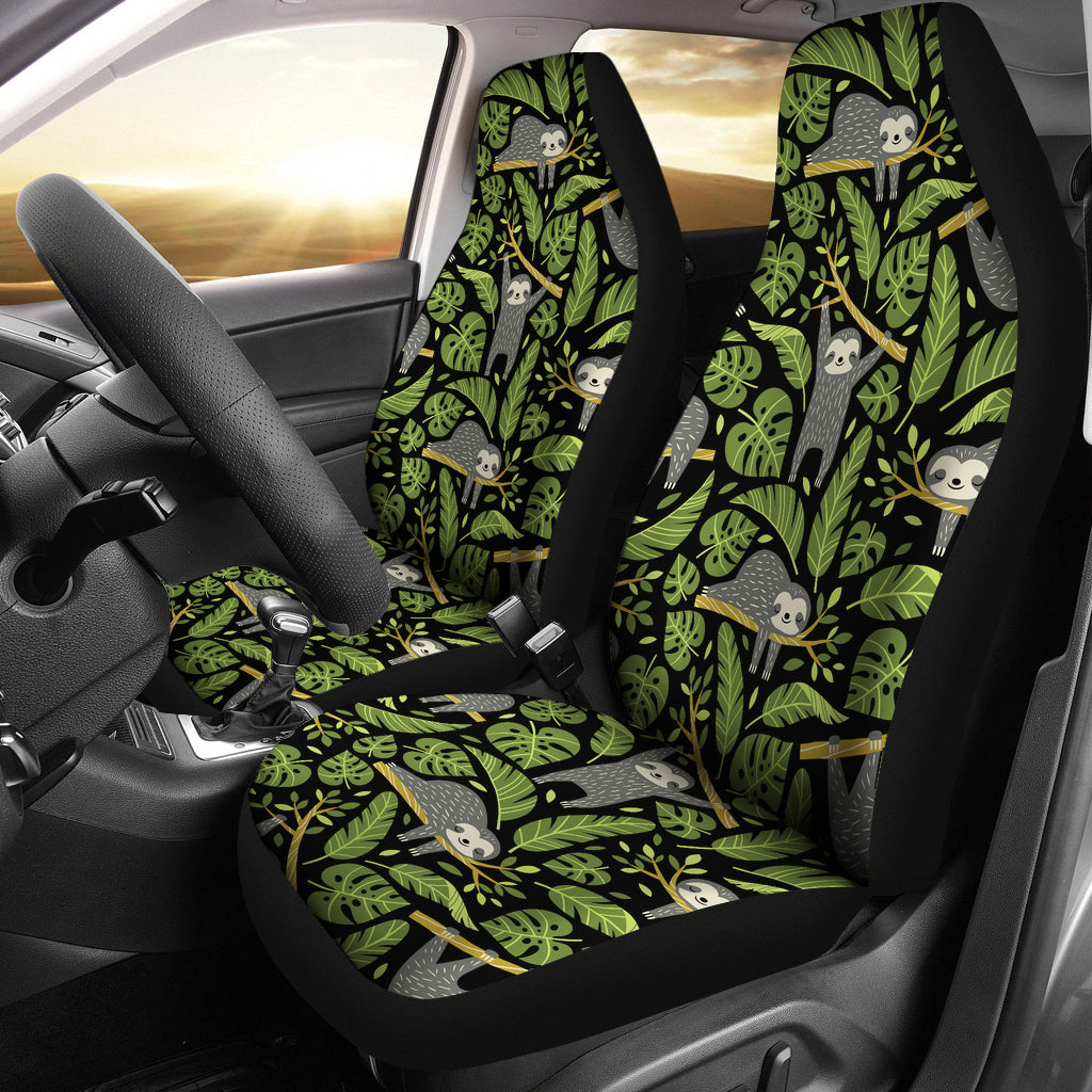 Sloth Car Seat Covers Cute Sloth On Tree Leaves Pattern Seat Covers Green Gray