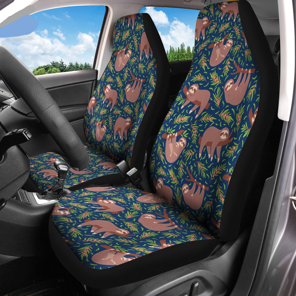 Sloth Car Seat Covers Lazy Sloths On Branch Pattern Seat Covers Blue Brown