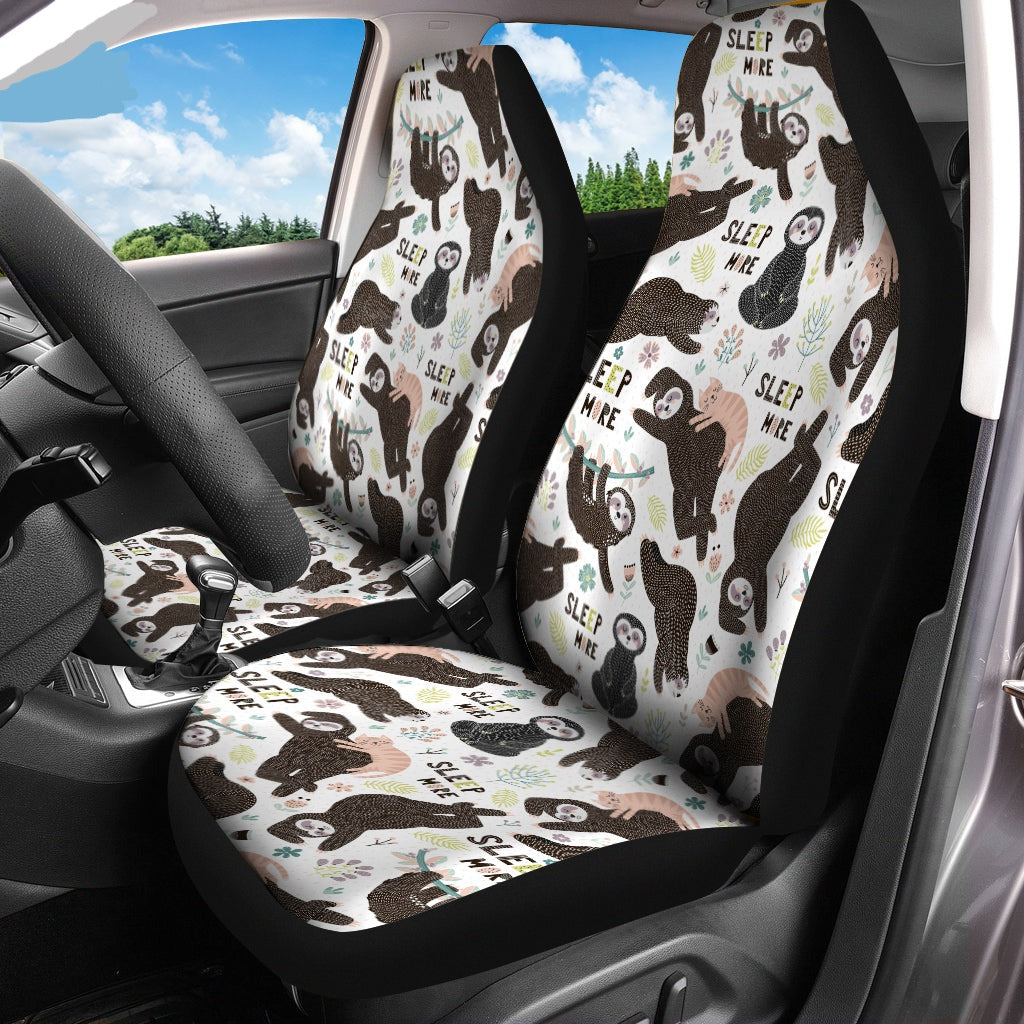 Sloth Car Seat Covers Sloth And Cat Sleep More Pattern Seat Covers White Brown
