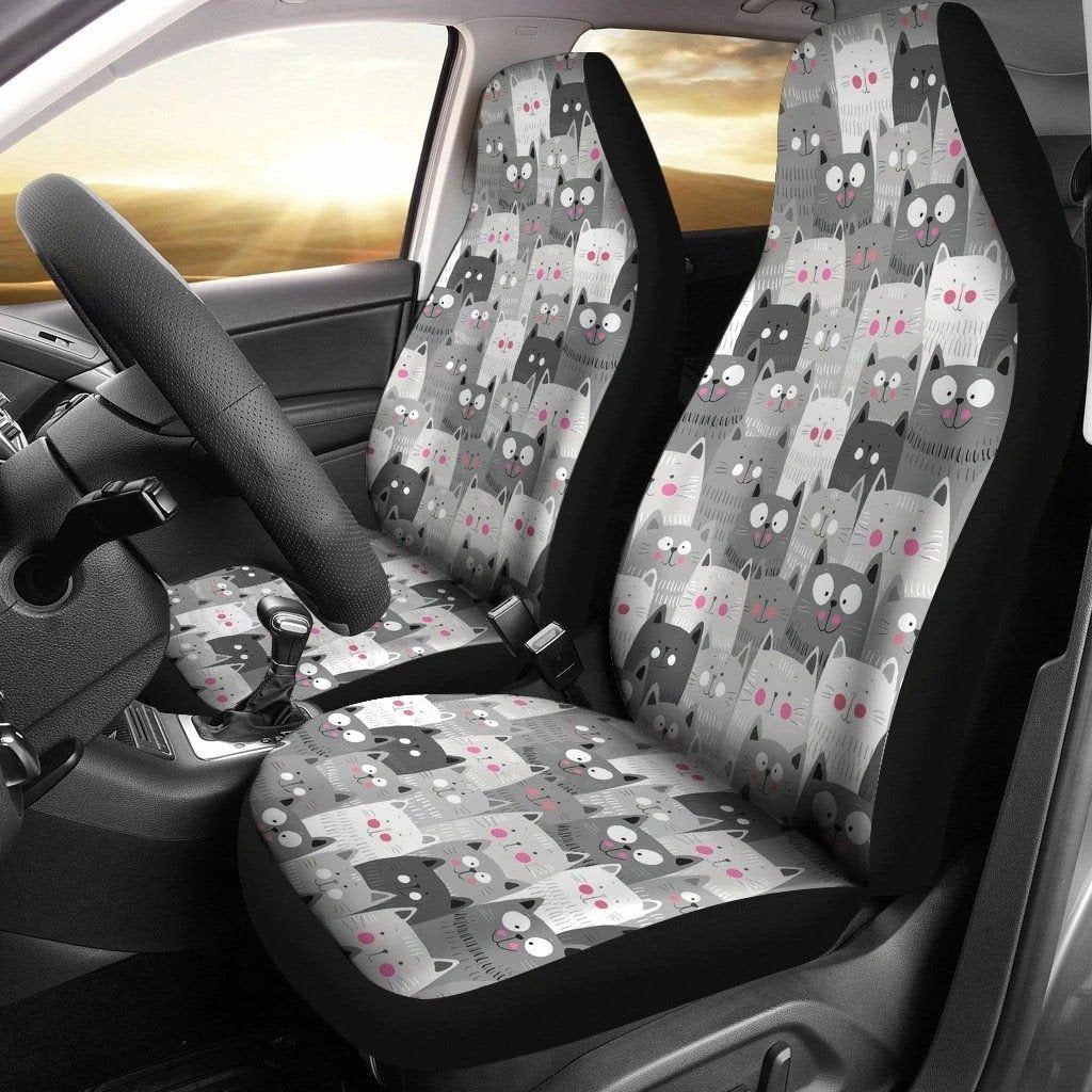 Cat Car Seat Covers Cute Cartoon Cat Doodle Pattern Seat Covers Gray
