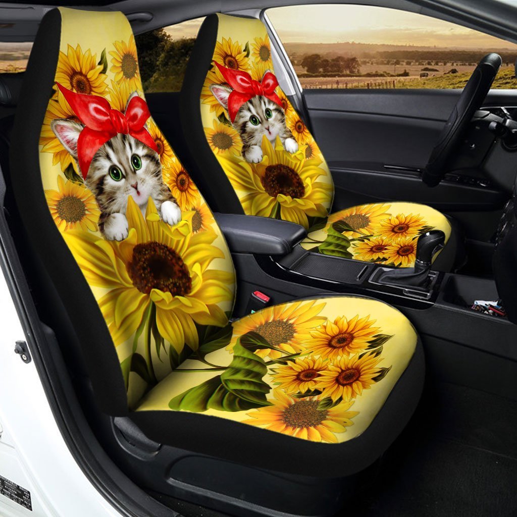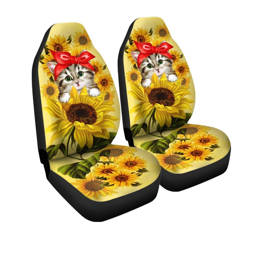 Cat Car Seat Covers Cute Kitten With Sunflower Graphic Seat Covers Yellow