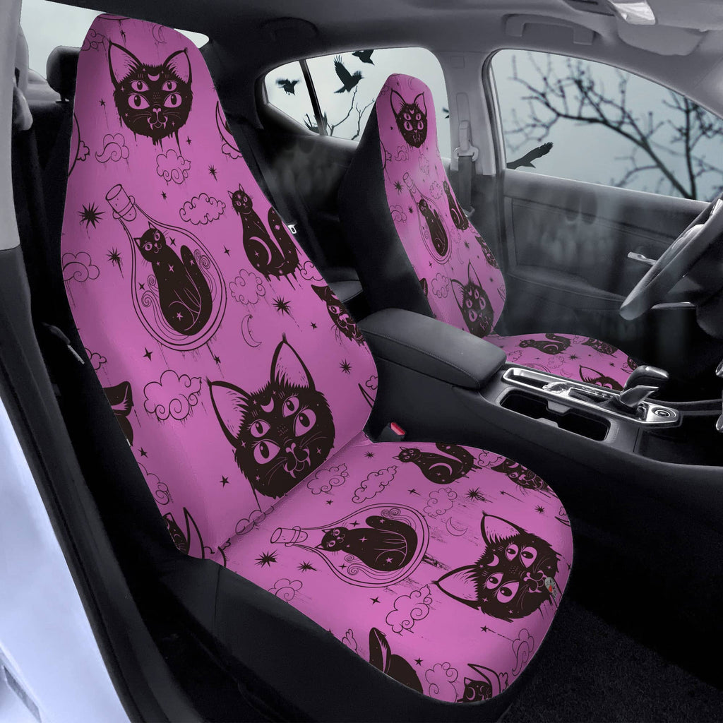 Cat Car Seat Covers Witch Cat Cloud Pattern Seat Covers Black Pink