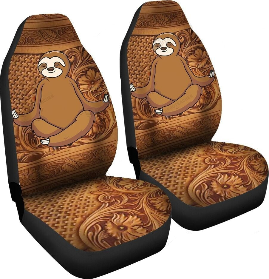 Sloth Car Seat Covers Sloth Wooden Carved Pattern Seat Covers Brown