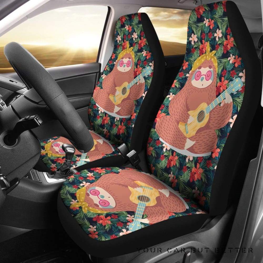 Sloth Car Seat Covers Sloth Playing Guitar Graphic Seat Covers Colorful