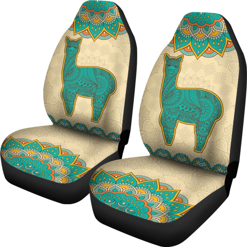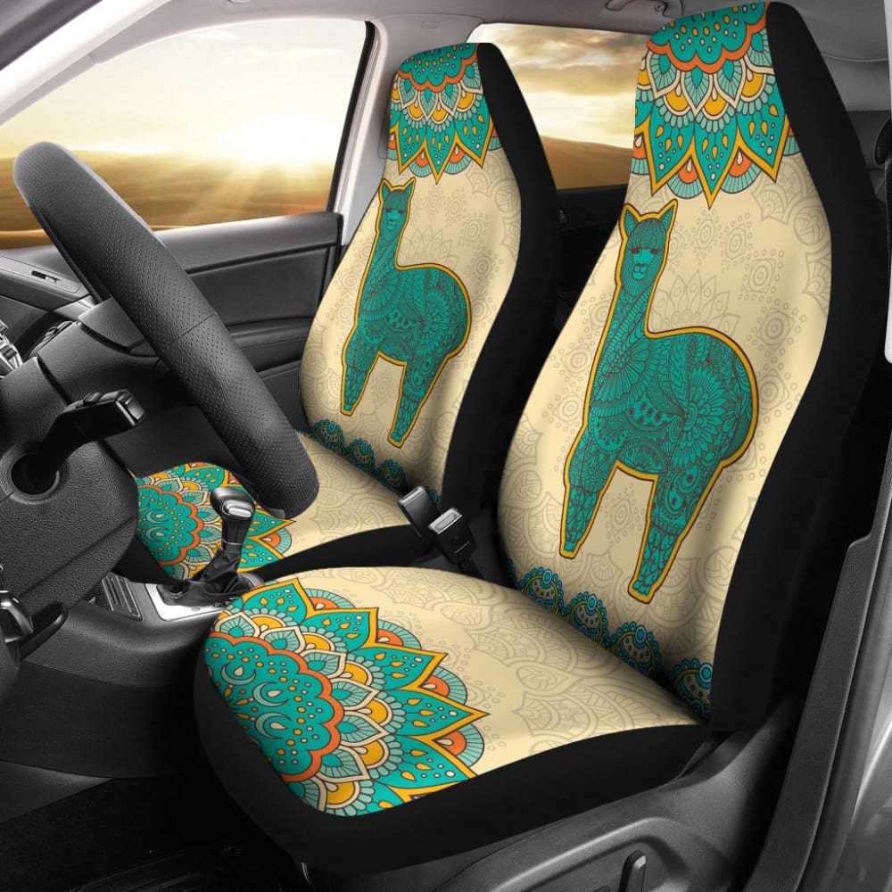 Llama Car Seat Covers Llama Boho Mandala Pattern Seat Covers White Green