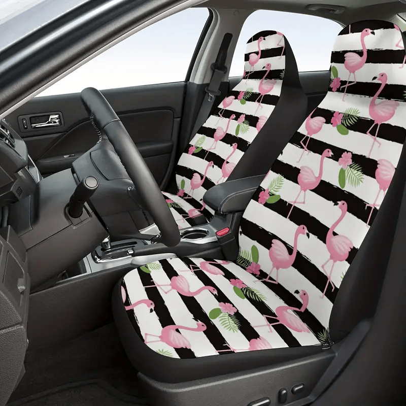 Flamingo Car Seat Covers Flamingo Flower Stripes Pattern Seat Covers Black White