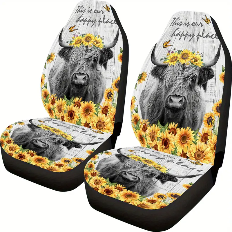 Cow Car Seat Covers Cosw This Is Our Happy Place Seat Covers Gray Yellow