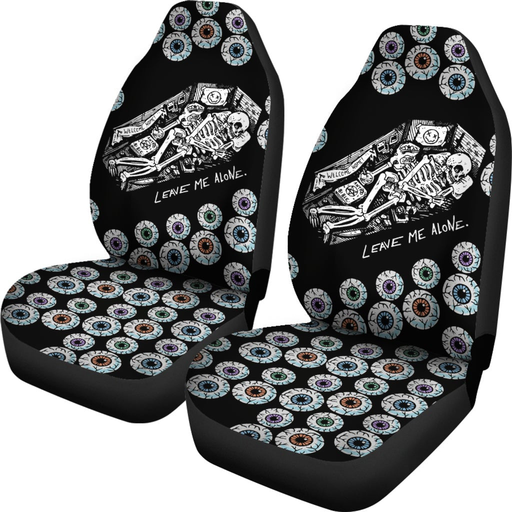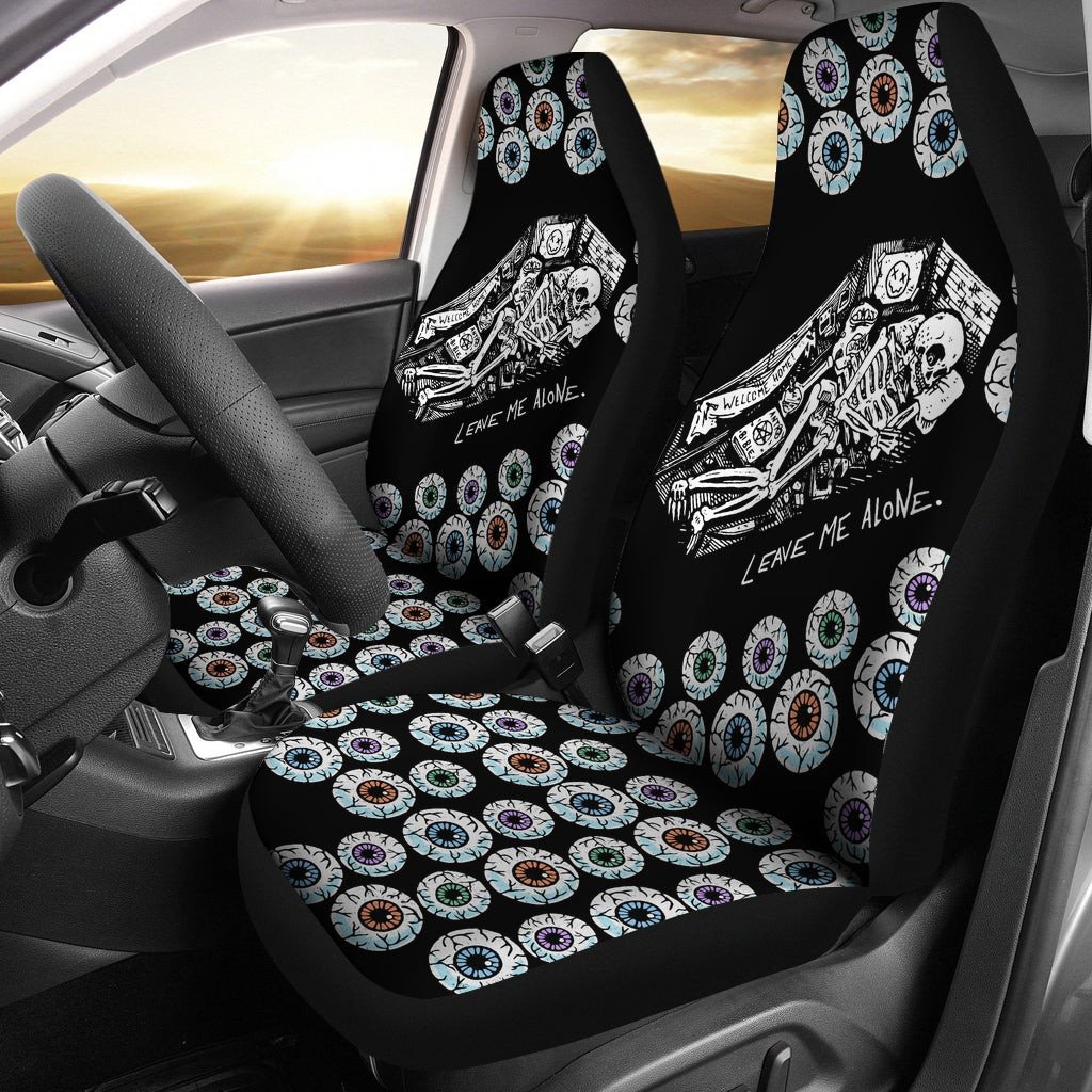 Halloween Car Seat Covers Skeleton In Coffin Leave Me Alone Seat Covers Black White