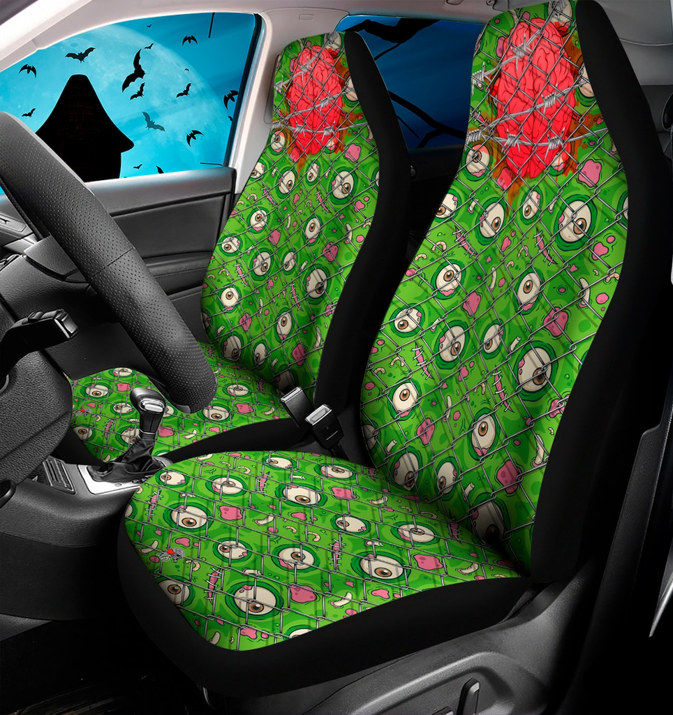 Halloween Car Seat Covers Zombie Trapped Monster Pattern Seat Covers Green