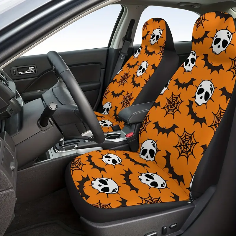 Halloween Car Seat Covers Skull Bat Spiderweb Pattern Seat Covers Orange