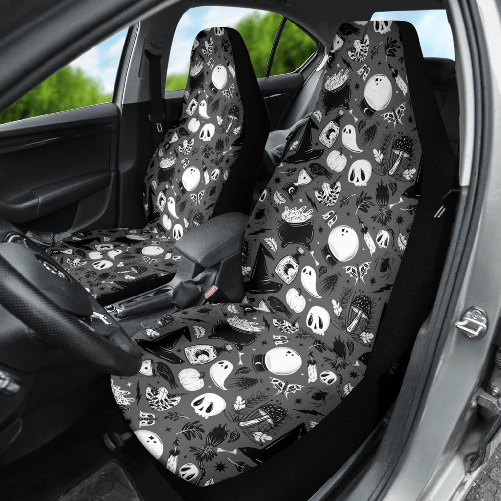 Halloween Car Seat Covers Halloween Ghost Witch Hat Pattern Seat Covers Black White