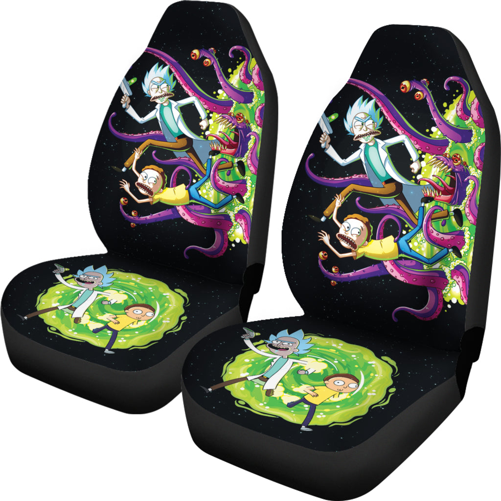 Rick And Moty Car Seat Covers Rick And Morty Running From Monster Seat Covers Colorful