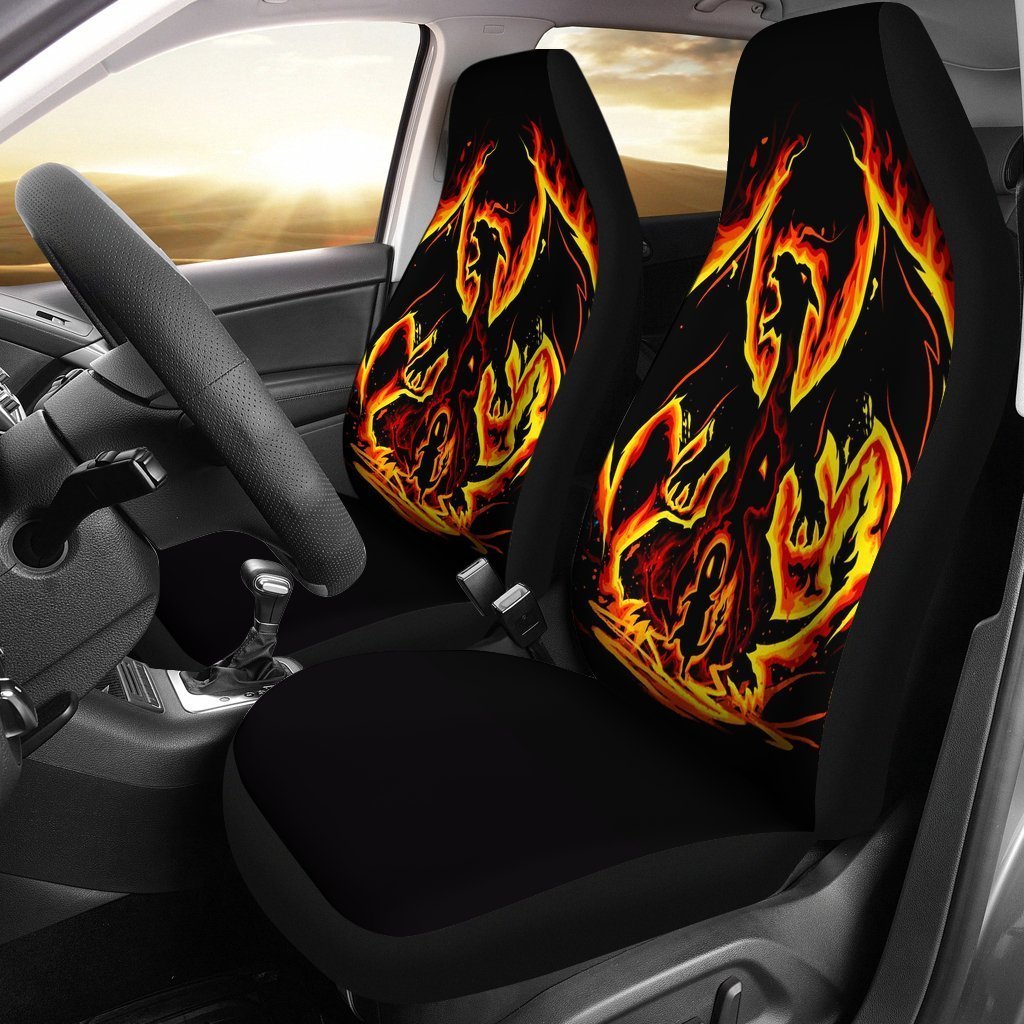 PKM Car Seat Covers PKM Evolution Charizard Silhouette Seat Covers Black Orange