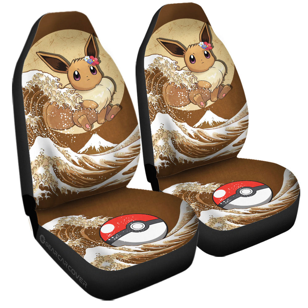 PKM Car Seat Covers PKM Eevee Japan Wave Pattern Seat Covers Brown