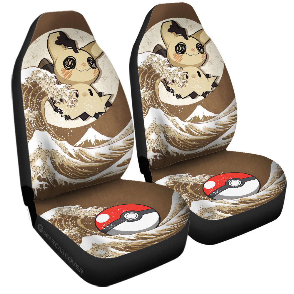 PKM Car Seat Covers PKM Mimikyu Japan Wave Pattern Seat Covers Brown