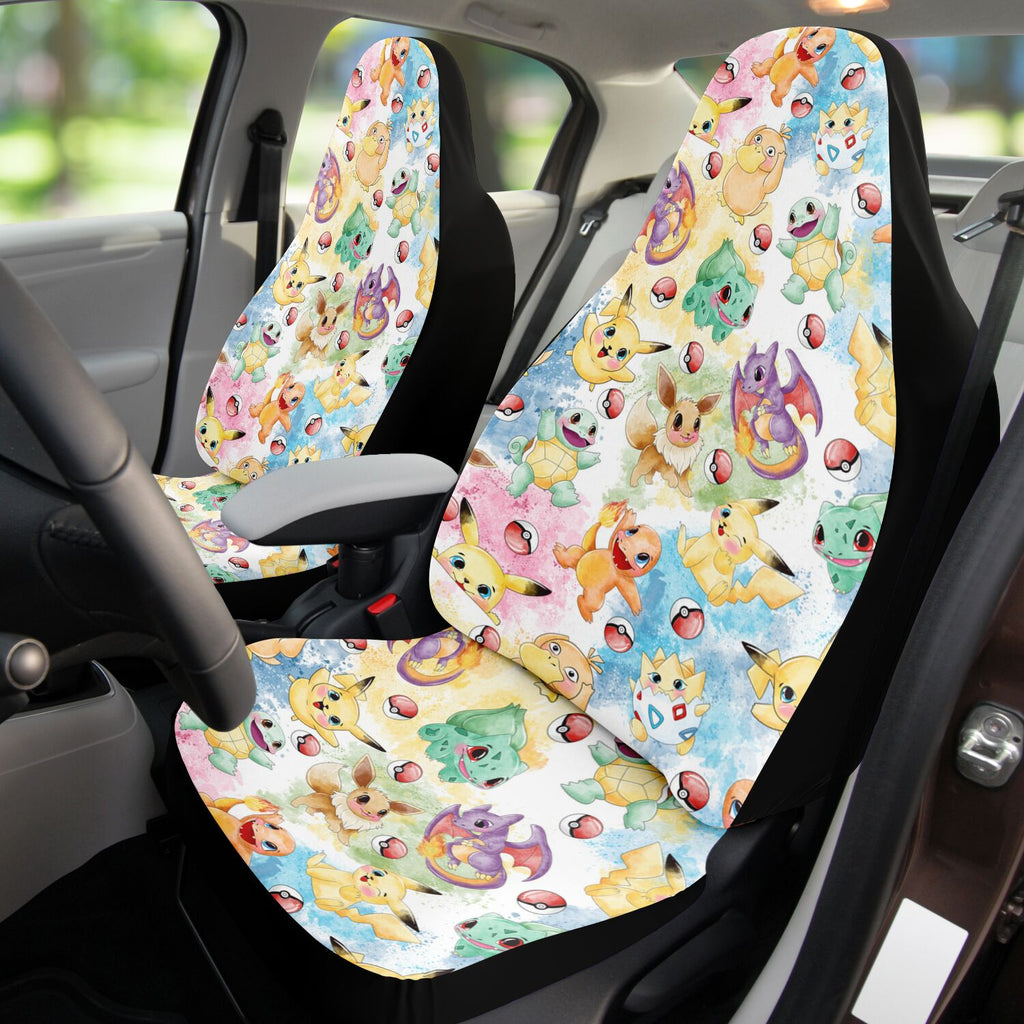 PKM Car Seat Covers All Types PKM Chibi Cute Pattern Seat Covers Colorful