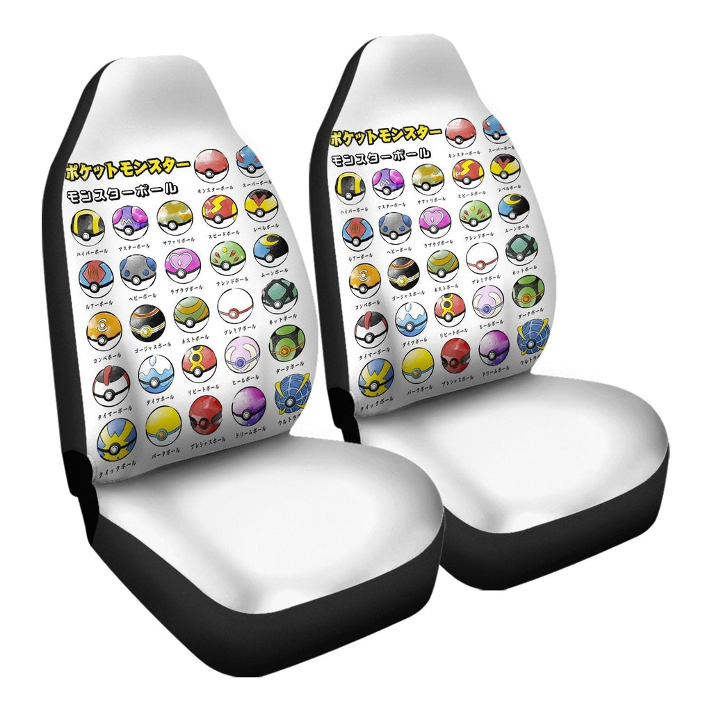 PKM Car Seat Covers All Types Of Pokeballs Pattern Seat Covers White