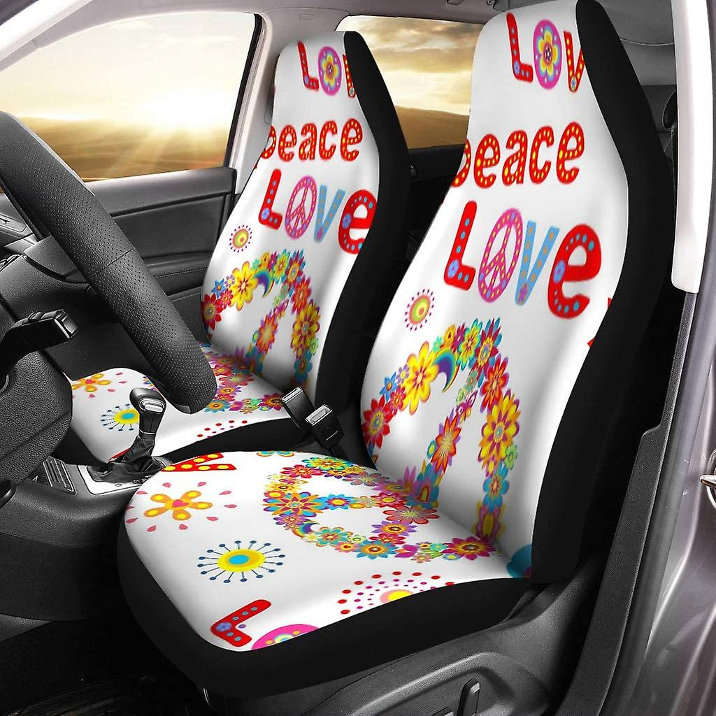 Hippie Car Seat Covers Love Peace Symbol Flower Seat Covers White